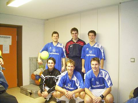 Gegen den SV Tüssling, der nach dem 3. Spiel aus "mangelnder Lust" einfach die Heimreise antrat, konnte das Eröffnungsspiel mit 2:1 gewonnen werden. Die einzige Niederlage erhielt man im Spiel gegen die technisch versierten Kroaten aus Traunreut im letzten Spiel mit 3:4 - auf Grund des gewonnenen direkten Vergleichs gegen Altötting zieht man allerdings als Vorrundensieger in die am 15.01.2004 stattfindende Endrunde ein und hat eine lösbare Vorrundengruppe zugelost bekommen (SV Kay, Amerang, Oberfeldkirchen). Auf Ihre Unterstützung am kommenden WE in Trostberg freut sich die Seniorenmannschaft des TuS Kienberg!. | |