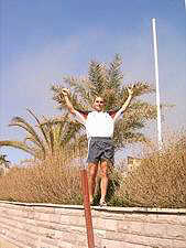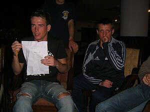- Flo bei den Vorbereitungen zur Strafaktion für Armin und Chris für das Joggingschwänzen am Vormittag.