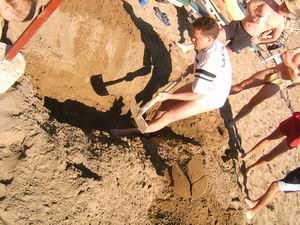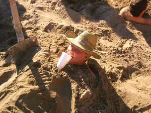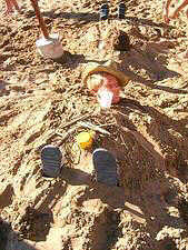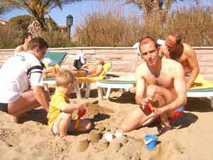 - Jacky mit Hannes beim Sandburgbauen.