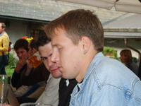 | Wuli. | Bernd schlägt Knappe Jacky zum Krüppel - äh, zum Ritter. Böse Zungen behaupten, Jacky verlor dabei ein Ohr. | Kurz vor dem Start zum Ritteressen. |